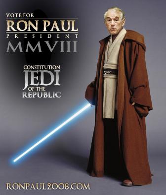 I've heard a lot of interviews, and read a few articles on Dr. Ron Paul, and dang if he doesn't have the right buzz words that tickles my ears. I know, I know, he is a politician, and most of them are lawyers that lie all the time in their trade, but I have to tell you he sure spouts out some situations he wants to jump on that are pet peeves with me about our government. One of his biggest targets is the Federal Reserve cult. He understands well the history of Jykle Island, and the power brokers that got the monopoly money concept pushed through a mealy mouthed Congress in 1913. Again, make your own decision and check out his web site. I like him as a Jedi Warrior, as America does NOT have a hero anymore, that defends the common working folks these days. All government is concerned with is assuring their big business cronies are happy.
